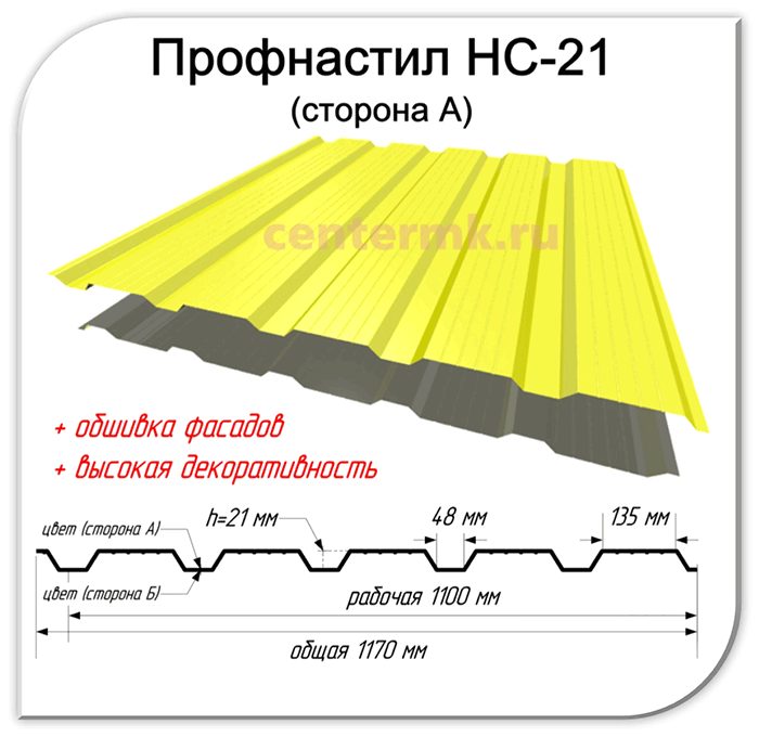 Все марки профнастила, производимого ЦМК, изготавливаются за 1 день и любой длины по желанию заказчика!