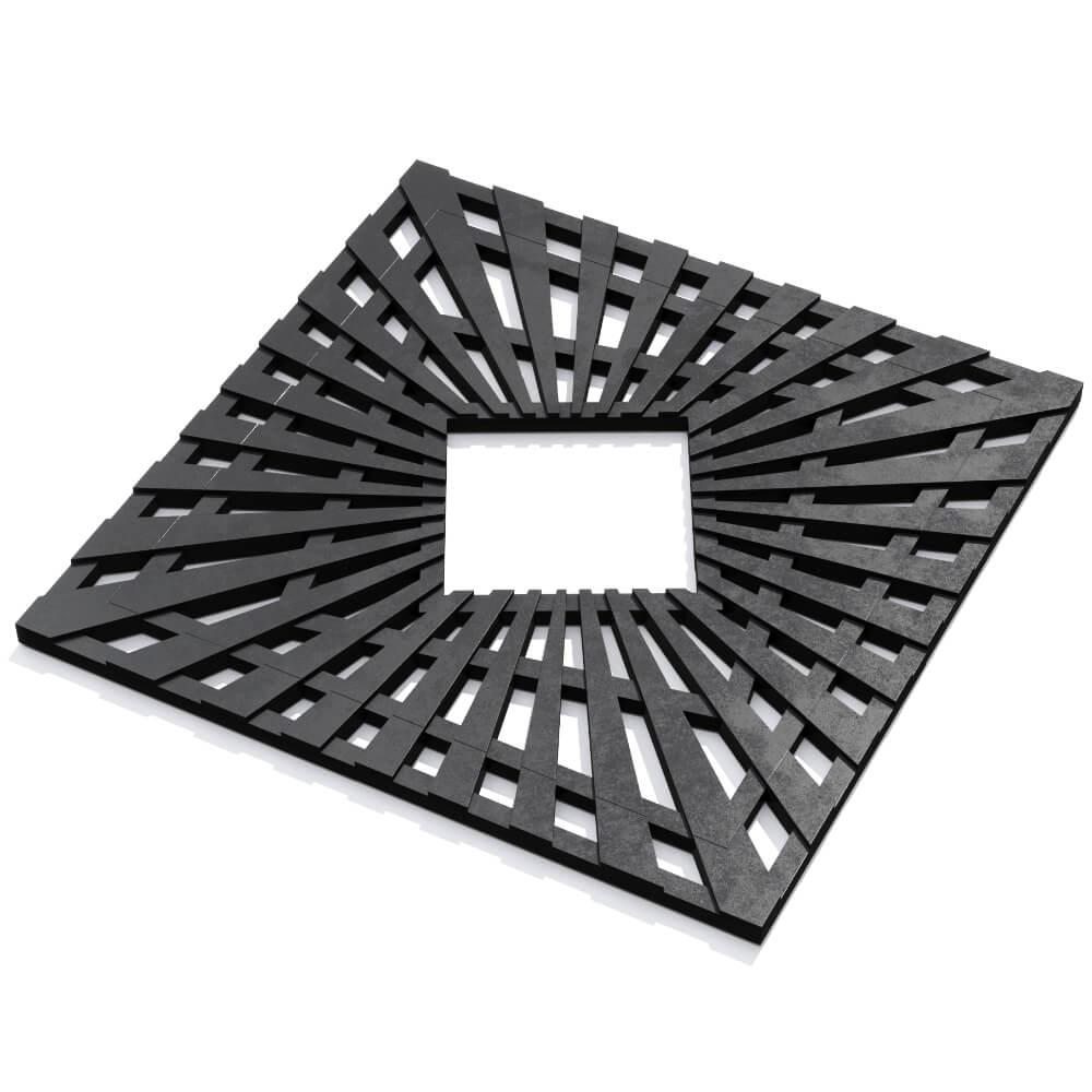 Прикорневая решётка Atmosphere Черная для городского благоустройства в Саранске. Состоит из 4-х отдельных элементов в форме лучей. Скрытая стыковка секций является особенностью данной модели и создаёт целостный вид. Решетка укладывается на почву вокруг деревьев, чтобы обеспечить благоприятные условия для их произрастания. Использование приствольных решёток является важным моментом при благоустройстве городских улиц, парков и скверов. Они способствуют сохранению естественной рыхлости почвы, защите корневой системы растений и свободному проникновению влаги, воздуха и солнечных лучей.