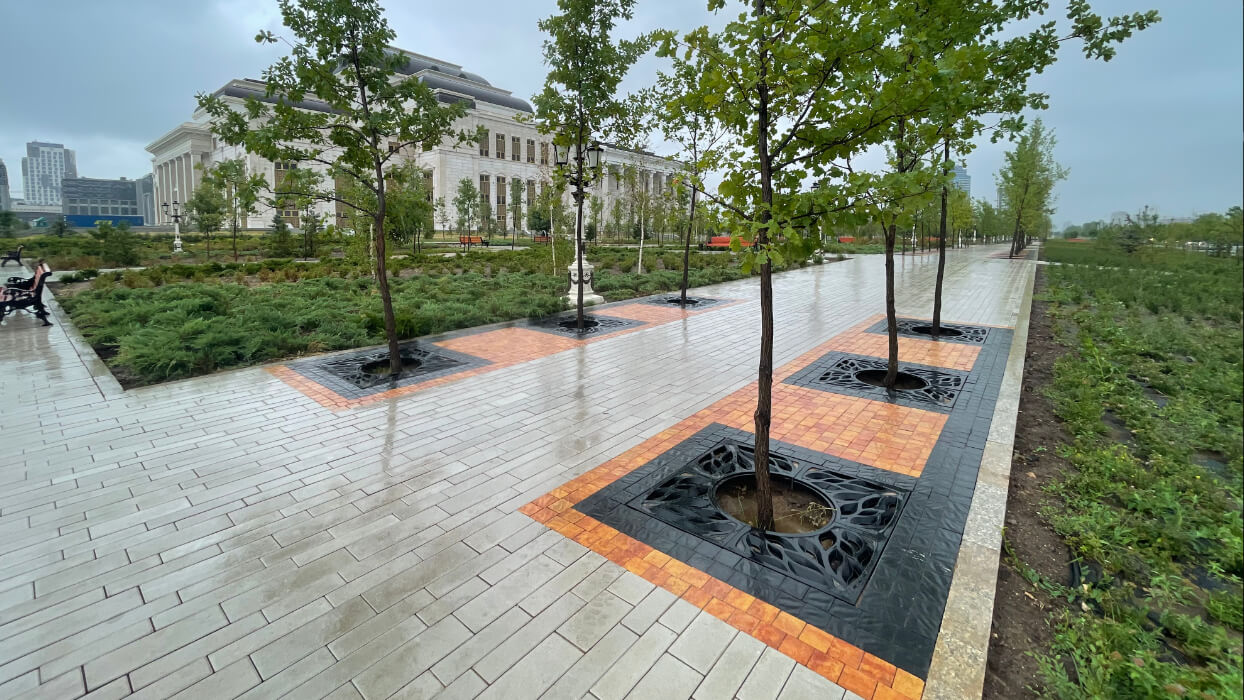 Прикорневая решётка Crust Черная 1.2х1.2м для городского благоустройства в Саранске. Состоит из 4-х отдельных элементов в форме кроны дерева. Скрытая стыковка секций является особенностью данной модели и создаёт целостный вид. Решетка укладывается на почву вокруг деревьев, чтобы обеспечить благоприятные условия для их произрастания. Использование приствольных решёток является важным моментом при благоустройстве городских улиц, парков и скверов. Они способствуют сохранению естественной рыхлости почвы, защите корневой системы растений и свободному проникновению влаги, воздуха и солнечных лучей.