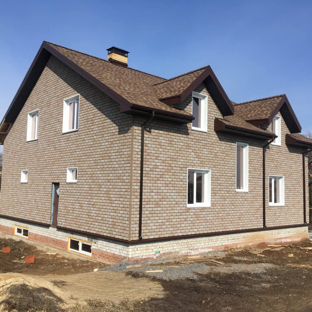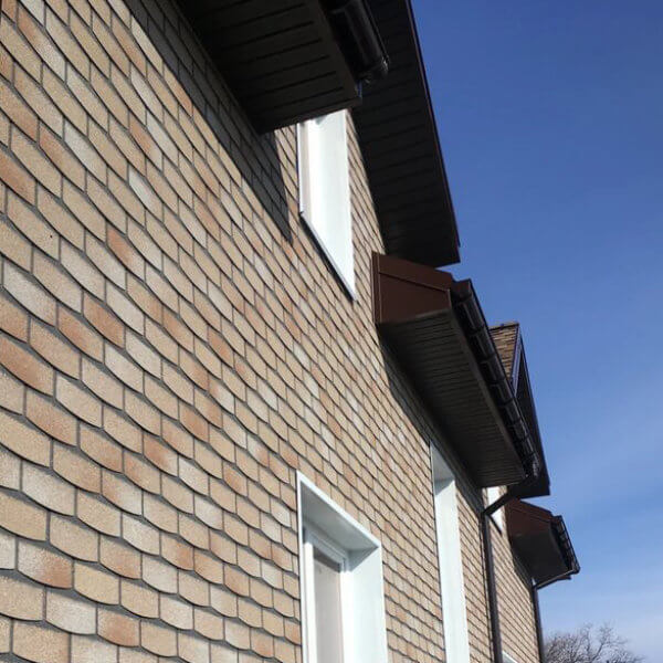 Плитка гибкая битумная для фасада Технониколь Хауберг коллекция Камень цвет Травертин размеры 1000х250х3мм (в упаковке 20 штук общей площадью 2,2 м2).