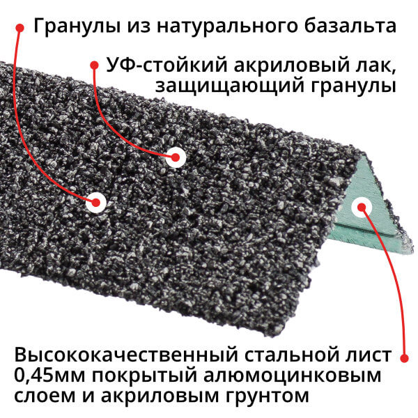Внешнее покрытие Крупнозернистая посыпка гранулами из натурального базальта