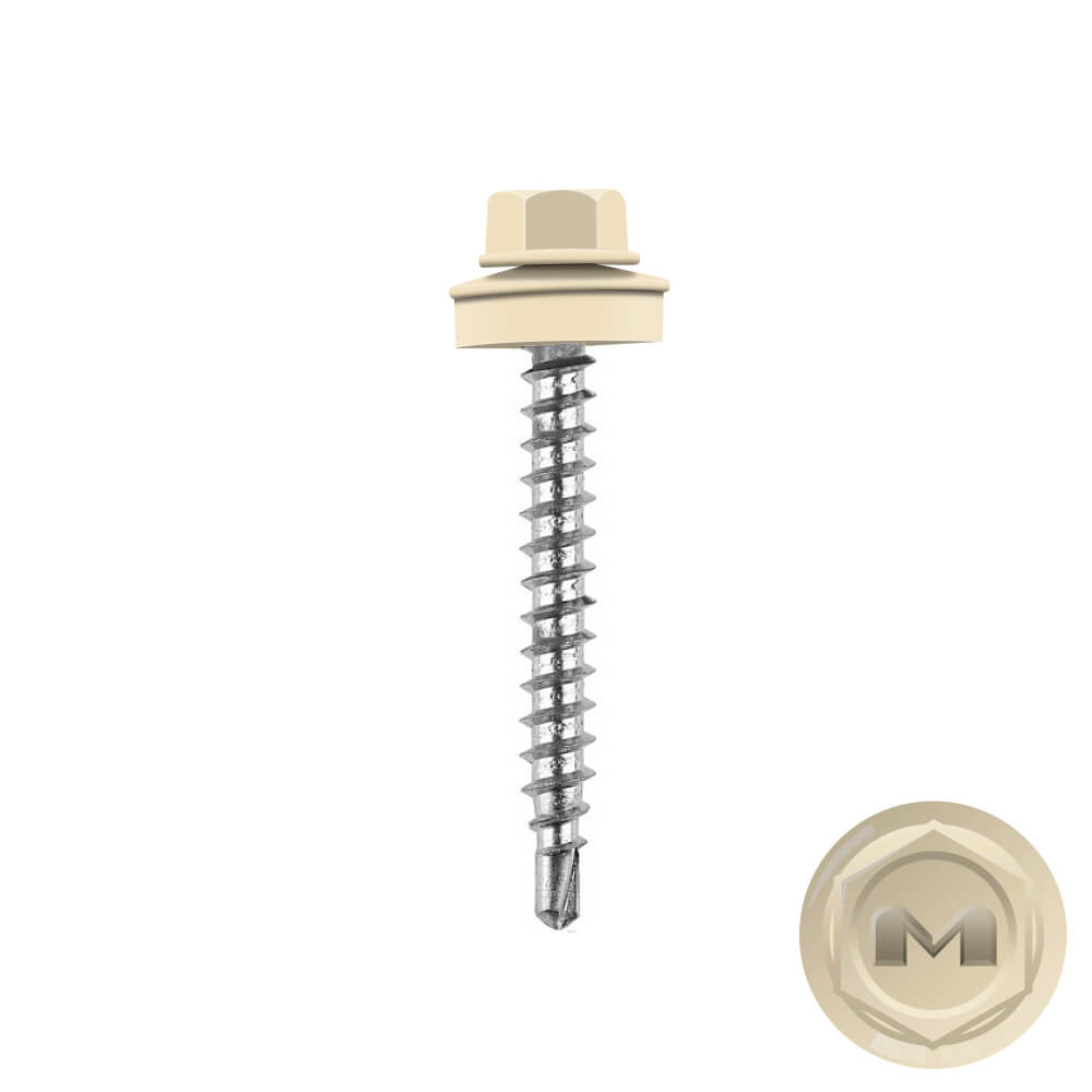 Кровельные саморезы Daxmer (Даксмер) по дереву цветом RAL1015 Слоновая кость 4,8*35мм окрашиваются УФ-стойкой полиэфирной порошковой краской. Цинковое антикоррозийное покрытие обеспечивает длительный срок службы саморезов (не менее 25 лет). Специальная металлическая шайба с ЕРDМ - уплотнителем обеспечивает плотное прилегание профилированного металла (кровли) к деревянной обрешетке, а также препятствует попаданию влаги.