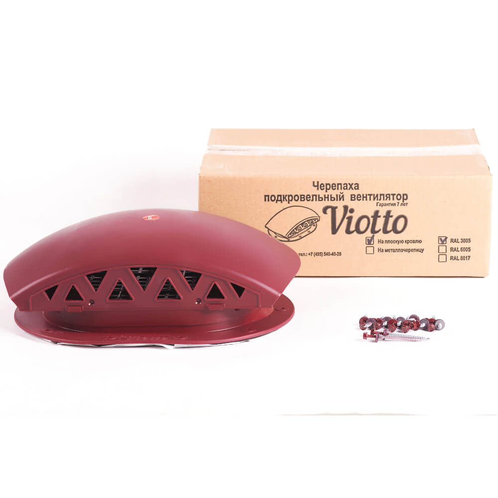 Подкровельный вентилятор "Черепаха" Viotto RAL 3005 Красное Вино для готовой мягкой и фальцевой кровли в Саранске