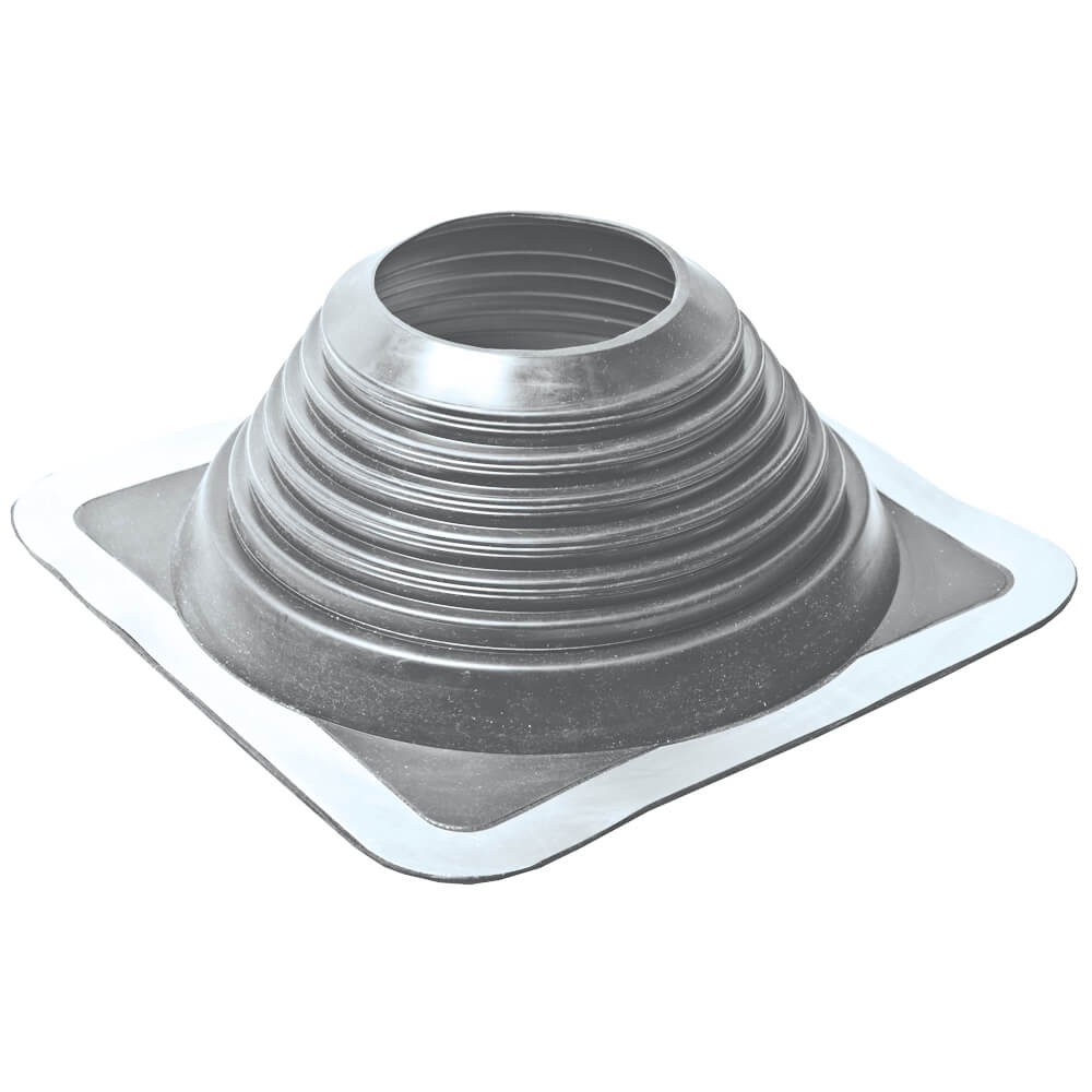 Фланец изготовлен из алюминиевого сплава с высокой стойкостью к окислению и воздействию агрессивных сред. Специально разработанная конструкция основания позволяет устанавливать уплотнители на кровли, практически, любой конфигурации.