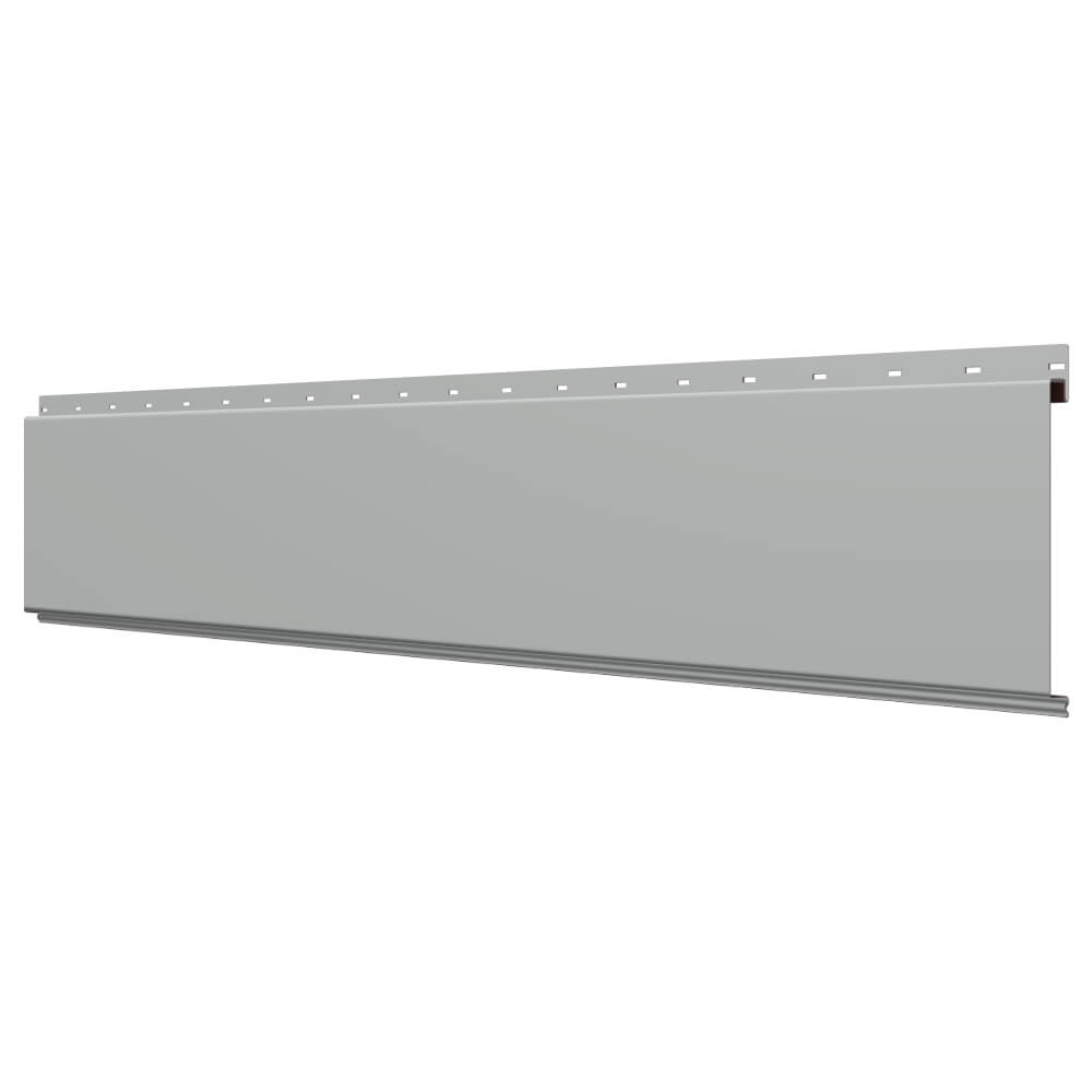 Линеарная потолочно-стеновая панель ГЛАДКАЯ цвет RAL9006 Серебро применяется в качестве софитов для подшивы крыши, наружной и внутренней отделки потолков, стен, фронтонов фасада дома в Саранске.