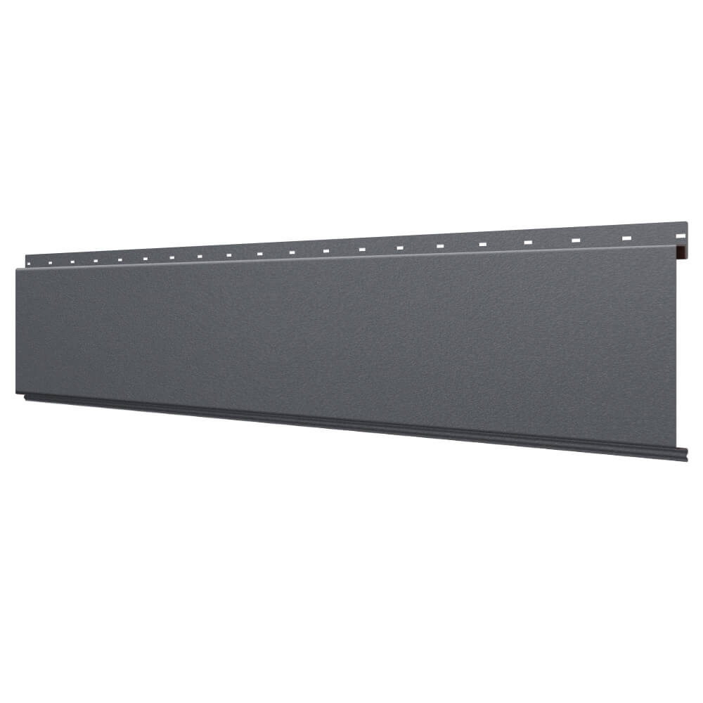 Линеарная потолочно-стеновая панель ГЛАДКАЯ цвет RAL7024 Серый Графит Стальной Бархат применяется в качестве софитов для подшивы крыши, наружной и внутренней отделки потолков, стен, фронтонов фасада дома в Саранске.