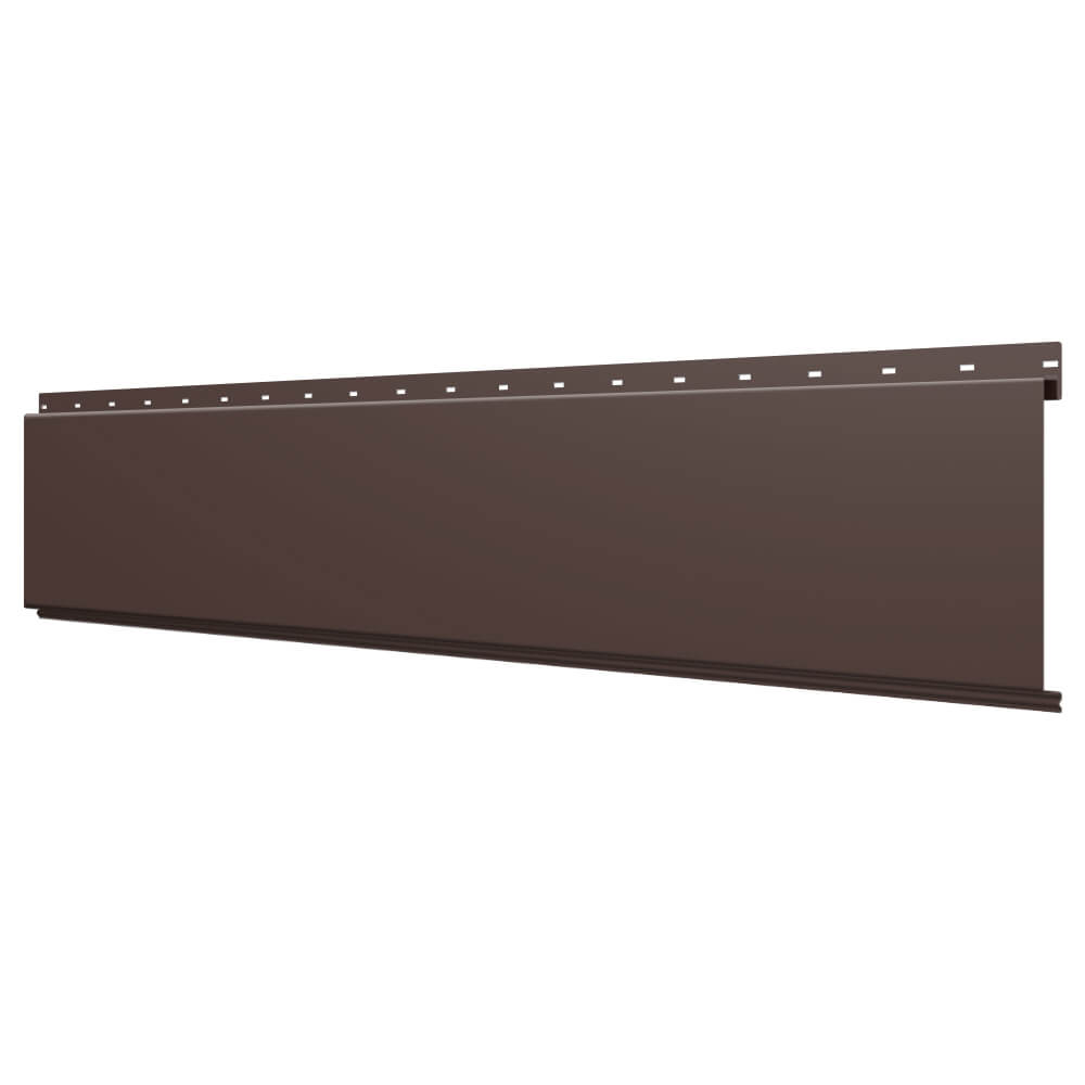 Линеарная потолочно-стеновая панель ГЛАДКАЯ цвет RAL8017 Шоколад применяется в качестве софитов для подшивы крыши, наружной и внутренней отделки потолков, стен, фронтонов фасада дома в Саранске.