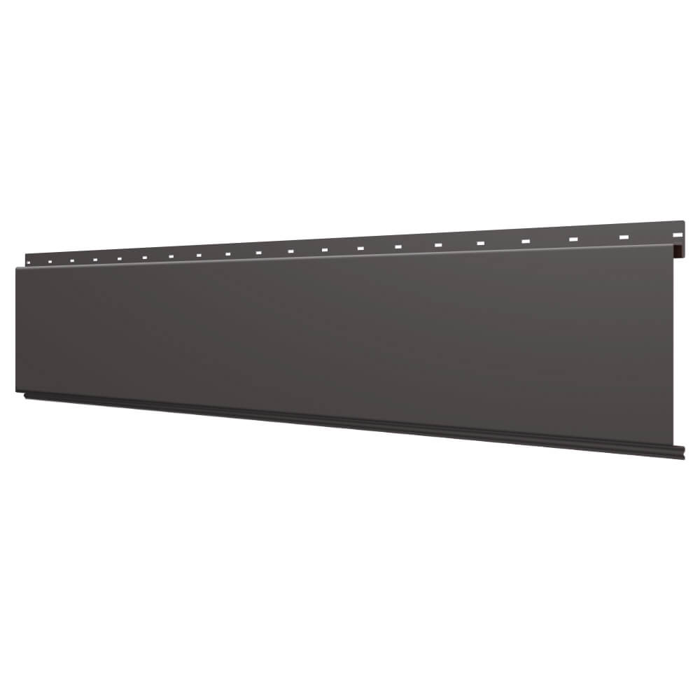 Линеарная потолочно-стеновая панель ГЛАДКАЯ цвет RAL8019 Темный Шоколад применяется в качестве софитов для подшивы крыши, наружной и внутренней отделки потолков, стен, фронтонов фасада дома в Саранске.