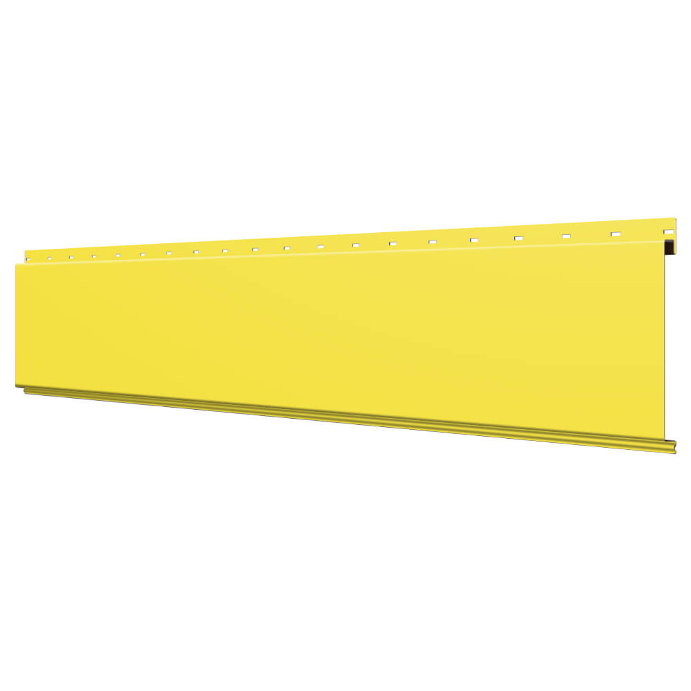 Линеарная потолочно-стеновая панель ГЛАДКАЯ цвет RAL1018 Желтый применяется в качестве софитов для подшивы крыши, наружной и внутренней отделки потолков, стен, фронтонов фасада дома в Саранске.