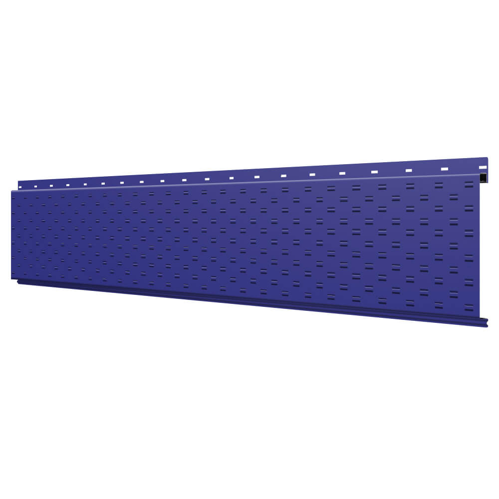 Линеарная потолочно-стеновая панель с ПЕРФОРАЦИЕЙ для вентиляции цвет RAL5002 Синий Ультрамарин применяется в качестве софитов для подшивы крыши, наружной и внутренней отделки потолков, стен, фронтонов фасада дома в Саранске.