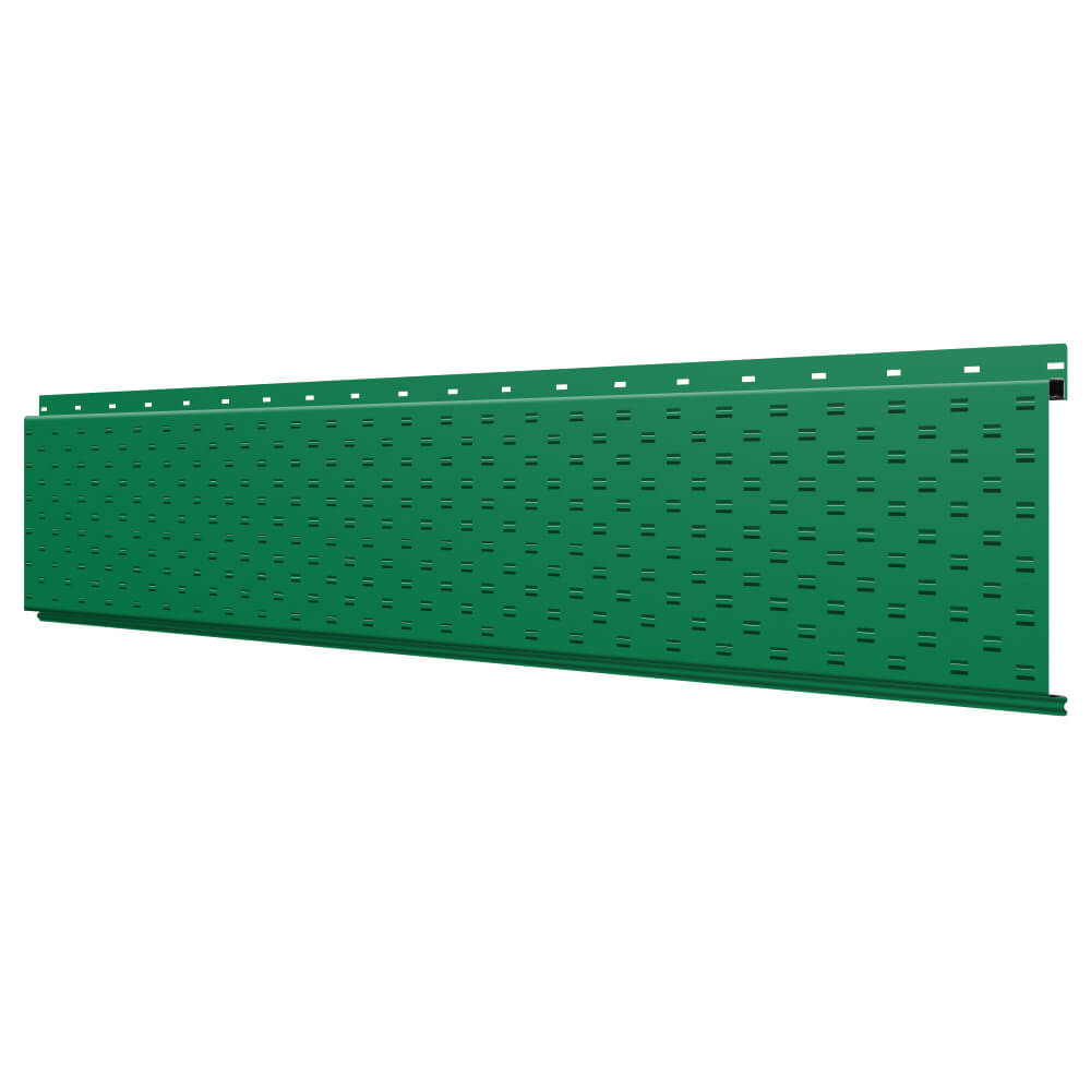 Линеарная потолочно-стеновая панель с ПЕРФОРАЦИЕЙ для вентиляции цвет RAL6029 Зеленая Мята применяется в качестве софитов для подшивы крыши, наружной и внутренней отделки потолков, стен, фронтонов фасада дома в Саранске.