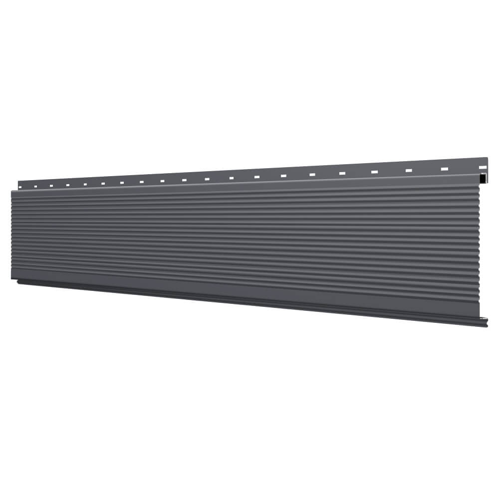Линеарная потолочно-стеновая панель РИФЛЕНАЯ усиленная цвет RAL7024 Серый Графит применяется в качестве софитов для подшивы крыши, наружной и внутренней отделки потолков, стен, фронтонов фасада дома в Саранске.