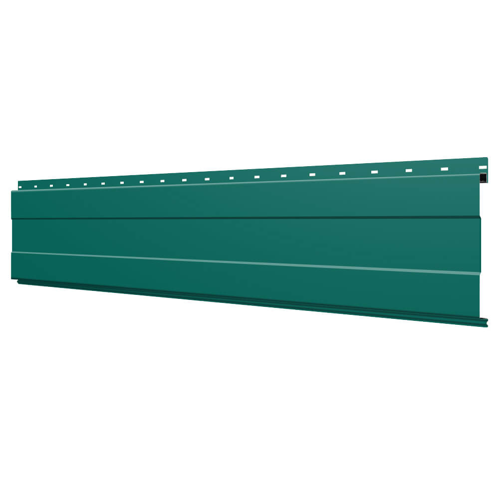 Линеарная потолочно-стеновая панель с ПОЛОСОЙ усиленная цвет RAL6026 Опал применяется в качестве софитов для подшивы крыши, наружной и внутренней отделки потолков, стен, фронтонов фасада дома в Саранске.