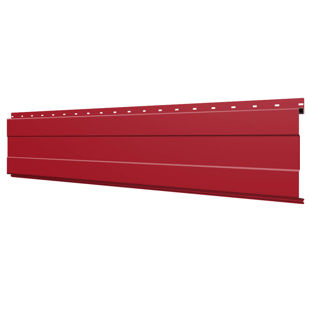 Линеарная потолочно-стеновая панель с ПОЛОСОЙ усиленная цвет RAL3003 Рубин применяется в качестве софитов для подшивы крыши, наружной и внутренней отделки потолков, стен, фронтонов фасада дома в Саранске.