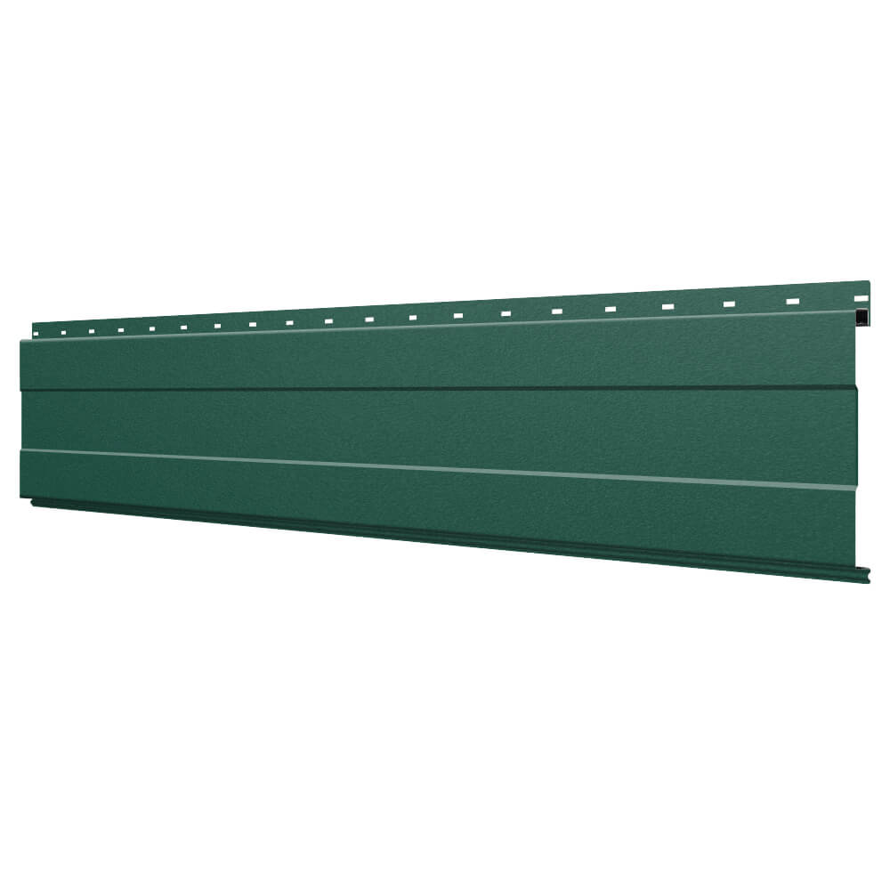 Линеарная потолочно-стеновая панель с ПОЛОСОЙ усиленная цвет RAL6005 Зеленый Мох Стальной Бархат применяется в качестве софитов для подшивы крыши, наружной и внутренней отделки потолков, стен, фронтонов фасада дома в Саранске.