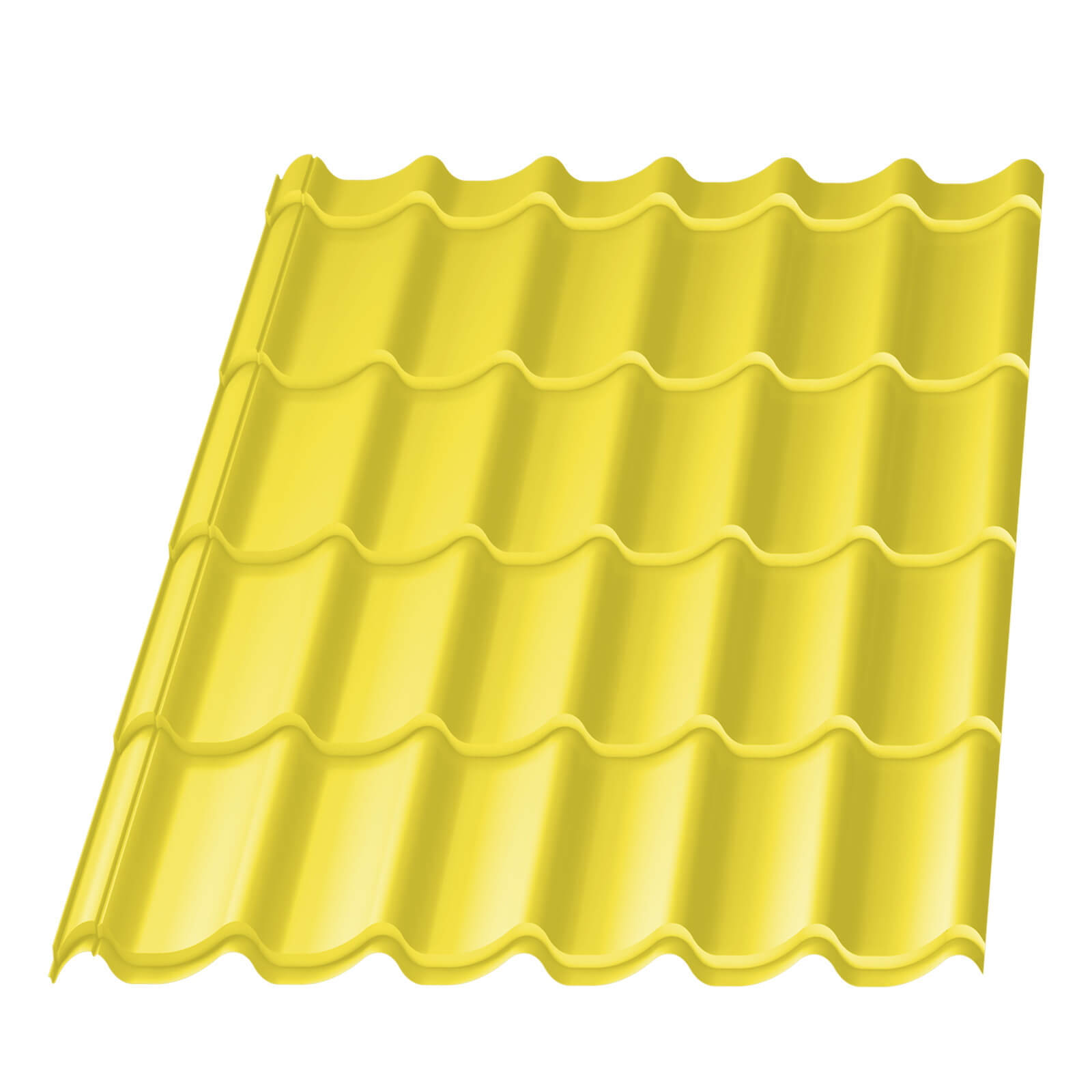 Металлическая черепица Меркурий RAL 1018 Желтый имеет профиль внешне на кровле напоминающий классическую керамическую черепицу. Меркурий — это обновленный аналог профиля металлической черепицы для кровли крыши. Форма профиля имеет богатый внешний вид напоминающий небольшие набегающие волны. Лучшие показатели герметизации сделали профиль Меркурий гарантом стабильной и долговременной службы на крышах в Саранске. Данный профиль отличается не только своим качеством, но и благородным внешним видом.