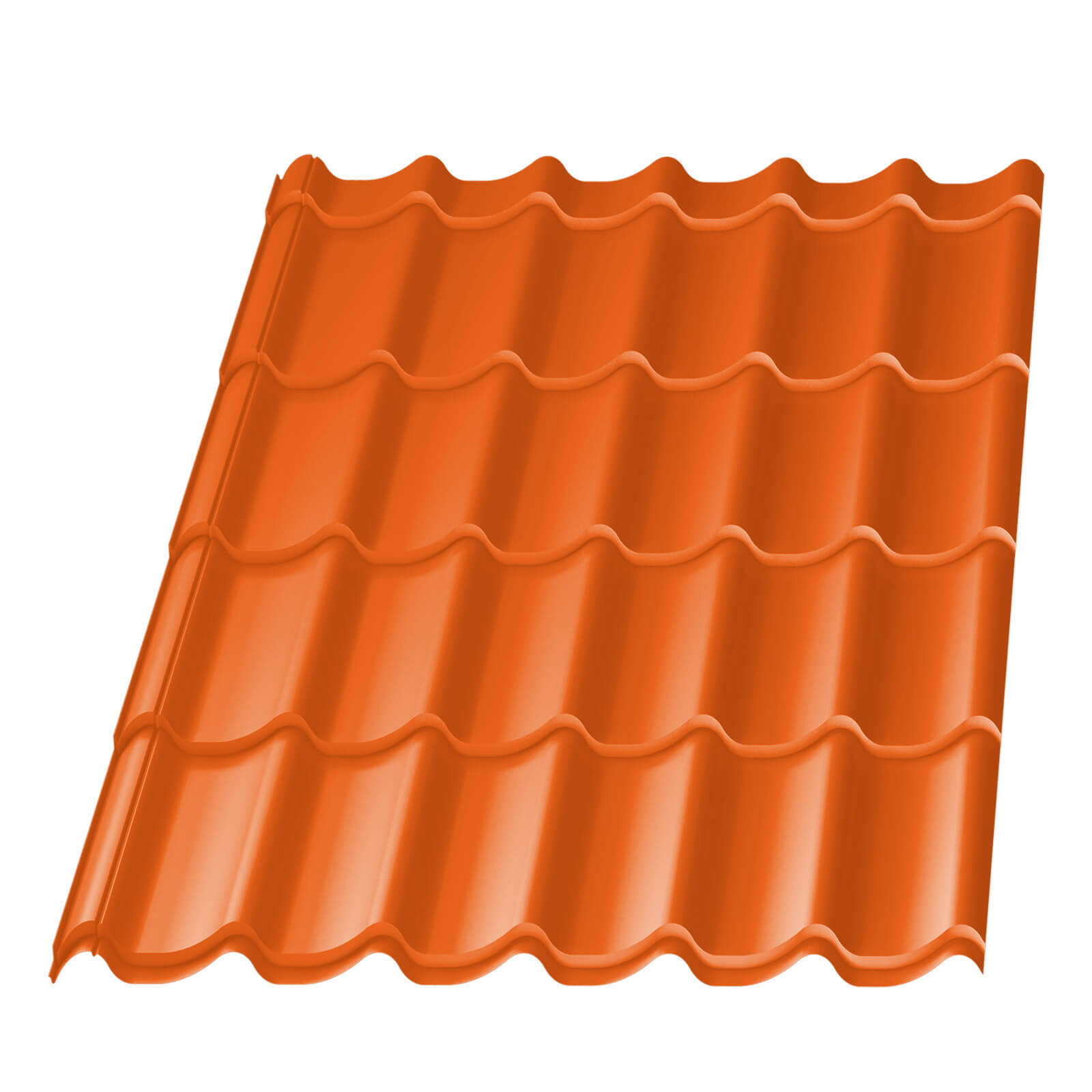 Металлическая черепица Меркурий цвет RAL 2004 Апельсин имеет профиль внешне на кровле напоминающий классическую керамическую черепицу. Меркурий — это обновленный аналог профиля металлической черепицы для кровли крыши. Форма профиля имеет богатый внешний вид напоминающий небольшие набегающие волны. Лучшие показатели герметизации сделали профиль Меркурий гарантом стабильной и долговременной службы на крышах в Саранске. Данный профиль отличается не только своим качеством и практичностью, но и благородным внешним видом.
