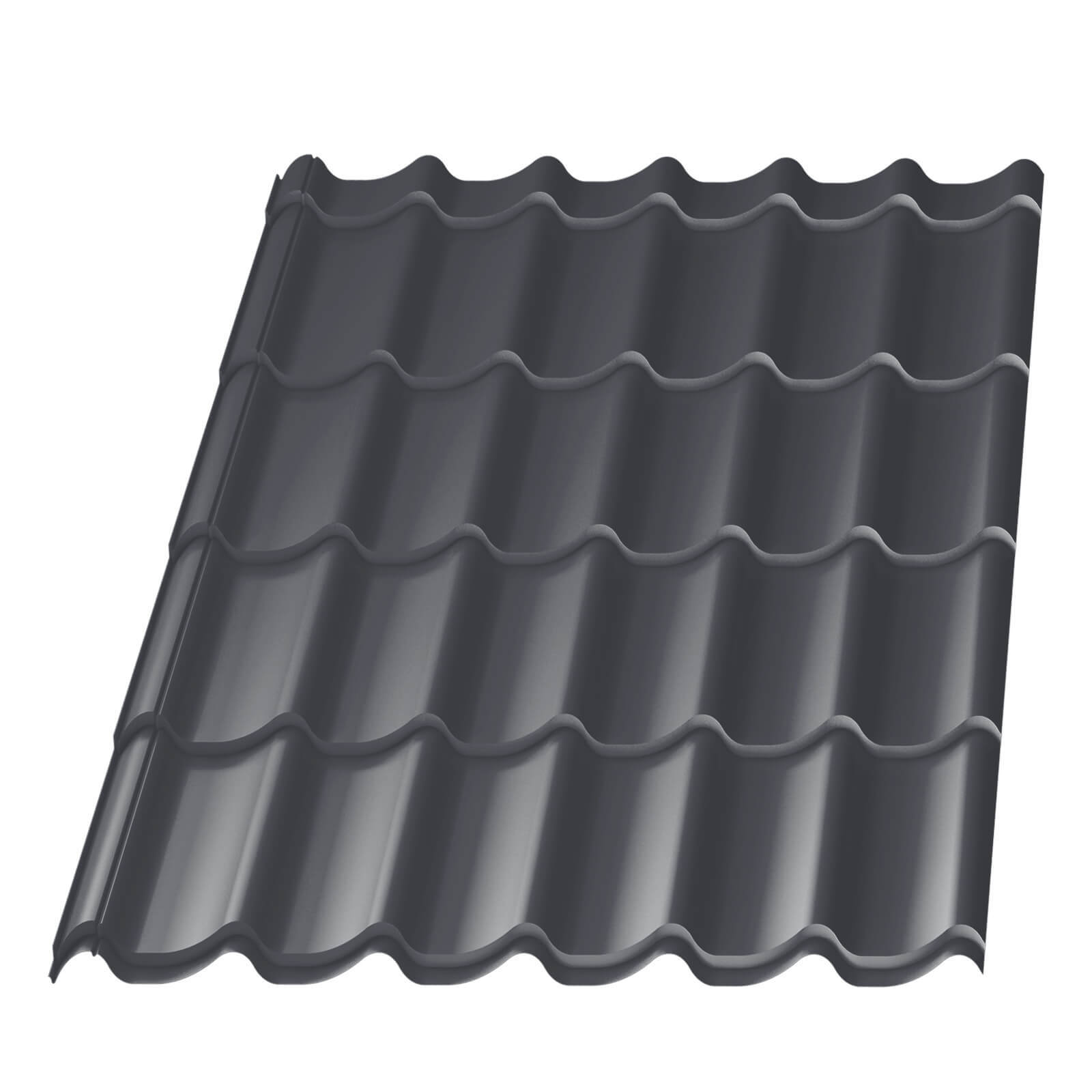 Металлическая черепица Меркурий цвет RAL 7024 Серый Графит имеет профиль внешне на кровле напоминающий классическую керамическую черепицу. Меркурий — это обновленный аналог профиля металлической черепицы для кровли крыши. Форма профиля имеет богатый внешний вид напоминающий небольшие набегающие волны. Лучшие показатели герметизации сделали профиль Меркурий гарантом стабильной и долговременной службы на крышах в Саранске. Данный профиль отличается не только своим качеством и практичностью, но и благородным внешним видом.