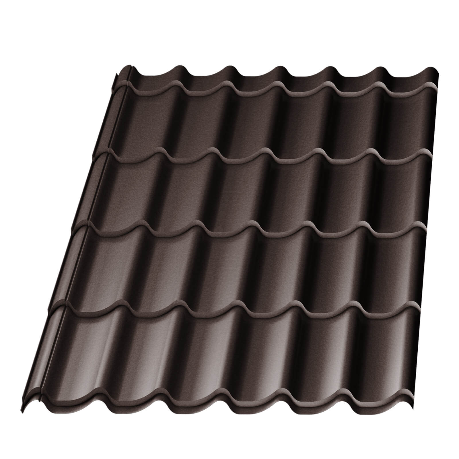 Металлическая черепица Меркурий цвет RAL 8017 Шоколад Стальной Бархат имеет профиль внешне на кровле напоминающий классическую керамическую черепицу. Меркурий — это обновленный аналог профиля металлической черепицы для кровли крыши. Форма профиля имеет богатый внешний вид напоминающий небольшие набегающие волны. Лучшие показатели герметизации сделали профиль Меркурий гарантом стабильной и долговременной службы на крышах в Саранске. Данный профиль отличается не только своим качеством и практичностью, но и благородным внешним видом.