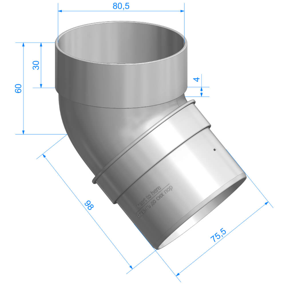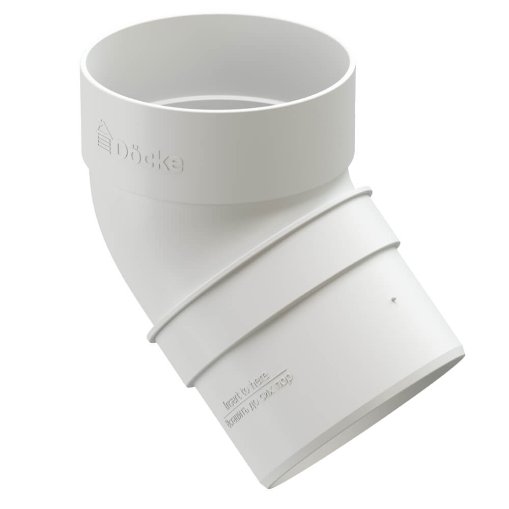 Колено трубы 45 градусов ДЕКЕ STANDARD d80мм цвет RAL 9003 Белый в Саранске - предназначено для обеспечения перехода от воронки к трубе. Колена соединяют между собой отрезком трубы необходимой длины.