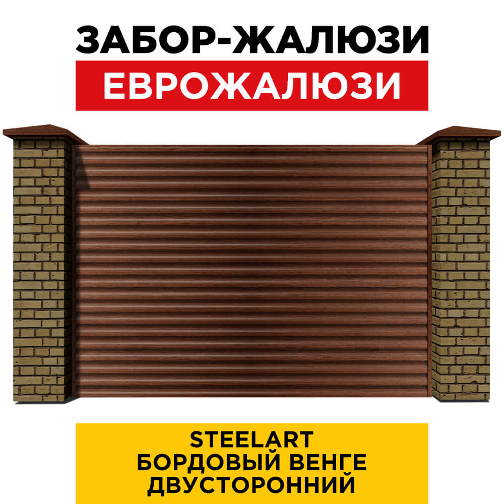Ламель Еврожалюзи металлическая S-образная, цвет под дерево Бордовый Венге SteelArt Россия двухстороннее покрытие, длина любая кратно 1см под заказ - для забора-жалюзи, беседки, перголы в Саранске