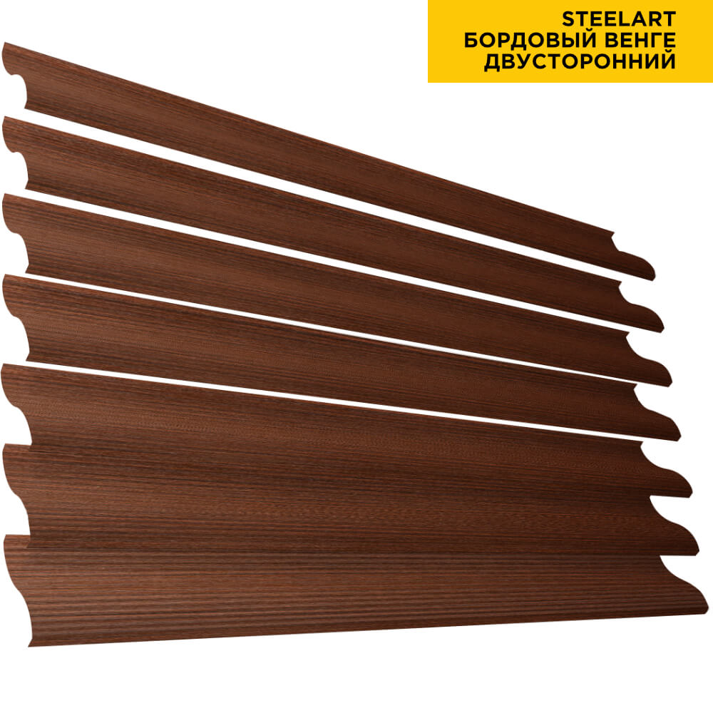 Ламель Еврожалюзи металлическая S-образная, цвет под дерево Бордовый Венге SteelArt Россия двухстороннее покрытие, длина любая кратно 1см под заказ - для забора-жалюзи, беседки, перголы в Саранске.