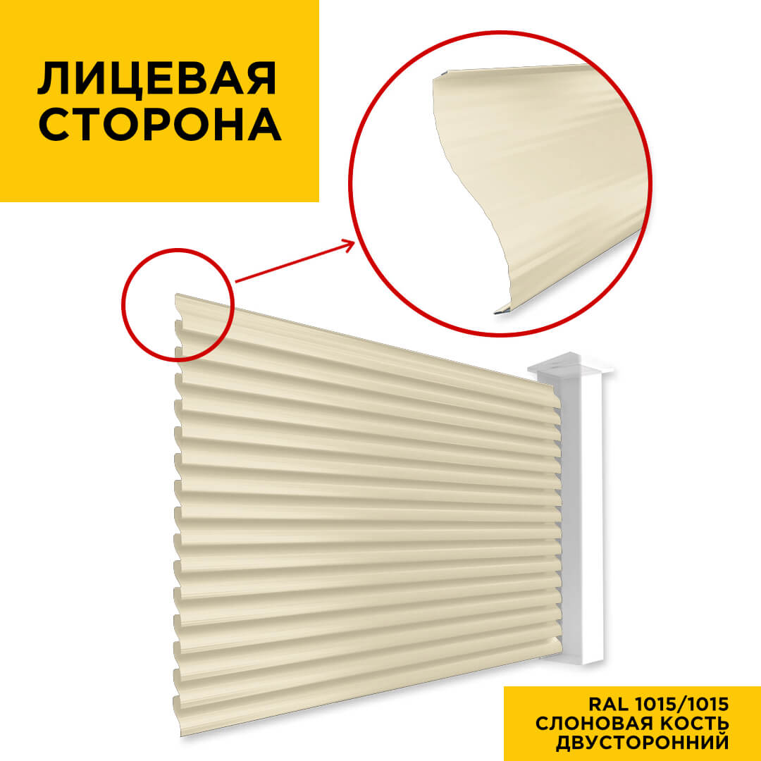 Ламель забора Еврожалюзи металлическая S-образная, цвет RAL 1015/1015 Слоновая Кость двустороннее покрытие полиэстер, длина любая кратно 1см под заказ - для забора-жалюзи, беседки, перголы в Саранске