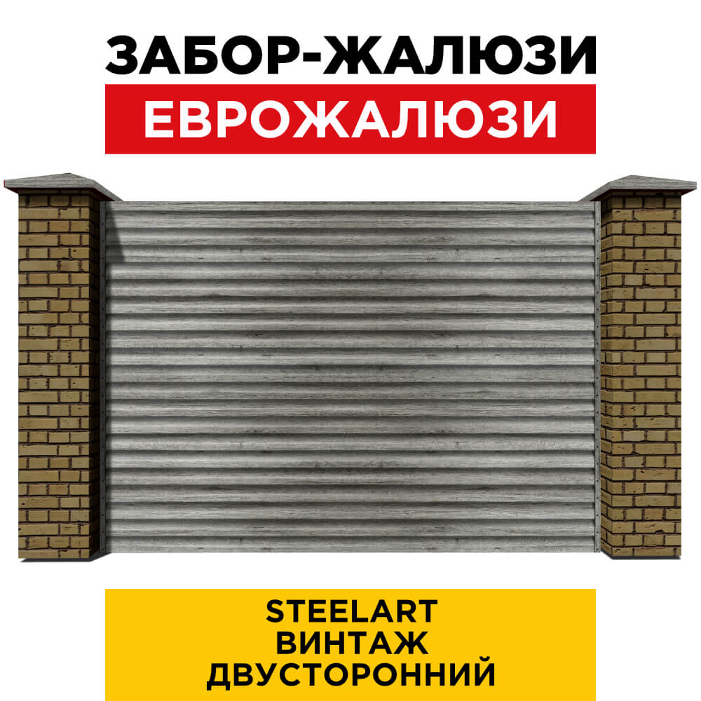 Ламель Еврожалюзи металлическая S-образная, цвет под дерево Винтаж SteelArt Россия двухстороннее покрытие, длина любая кратно 1см под заказ - для забора-жалюзи, беседки, перголы в Саранске