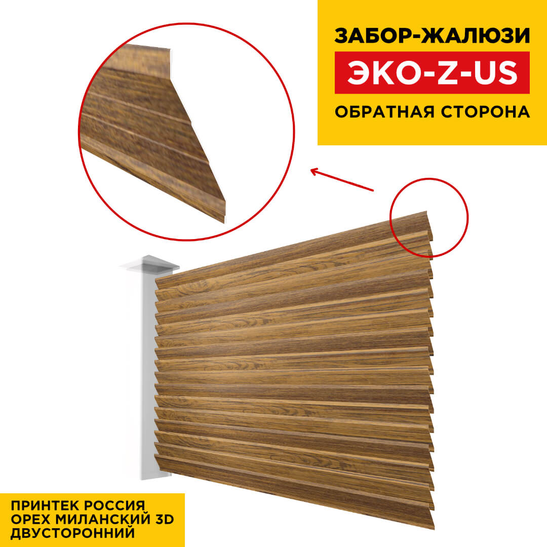 Ламель металлическая Z-образная усиленная ЭКО-Z-US, цвет под дерево Орех Миланский 3D Принтек Россия двухстороннее покрытие, длина любая кратно 1см под заказ - для забора-жалюзи, беседки, перголы в Саранске