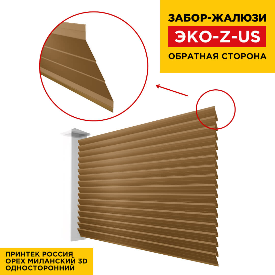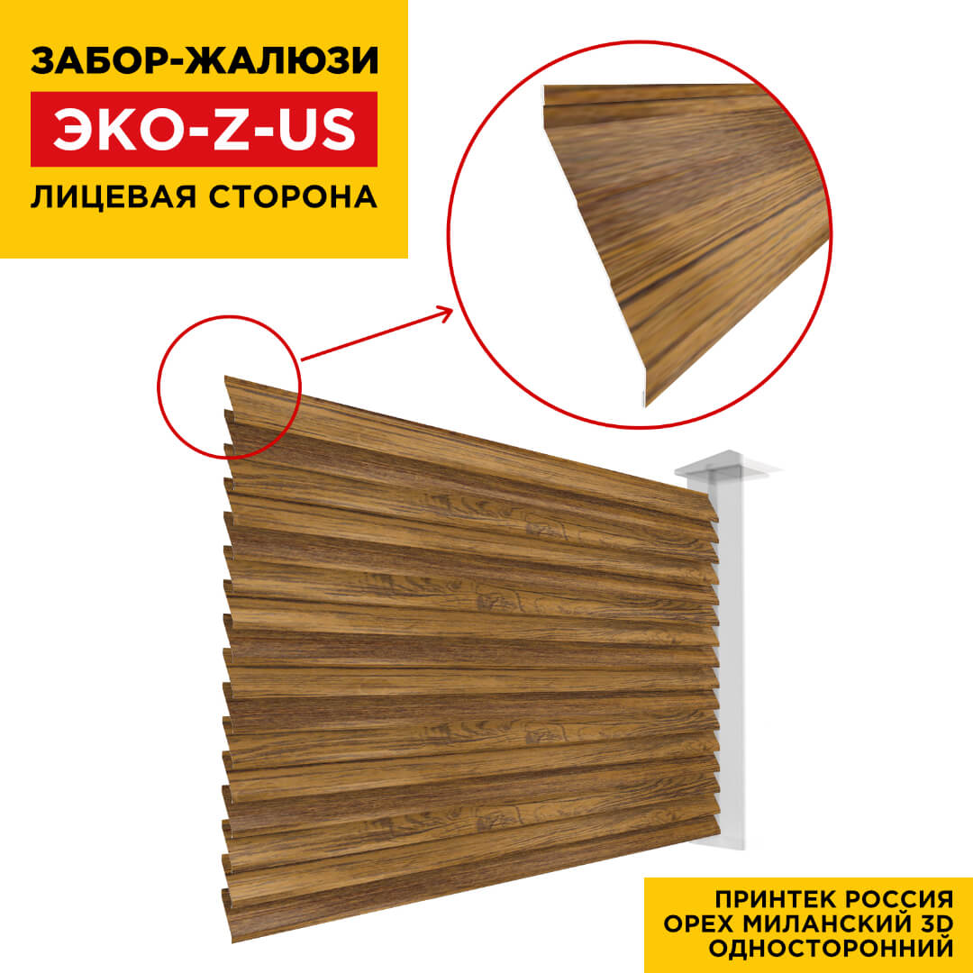 Ламель металлическая Z-образная усиленная ЭКО-Z-US, цвет под дерево Орех Миланский 3D Принтек Россия одностороннее покрытие, длина любая кратно 1см под заказ - для забора-жалюзи, беседки, перголы в Саранске.