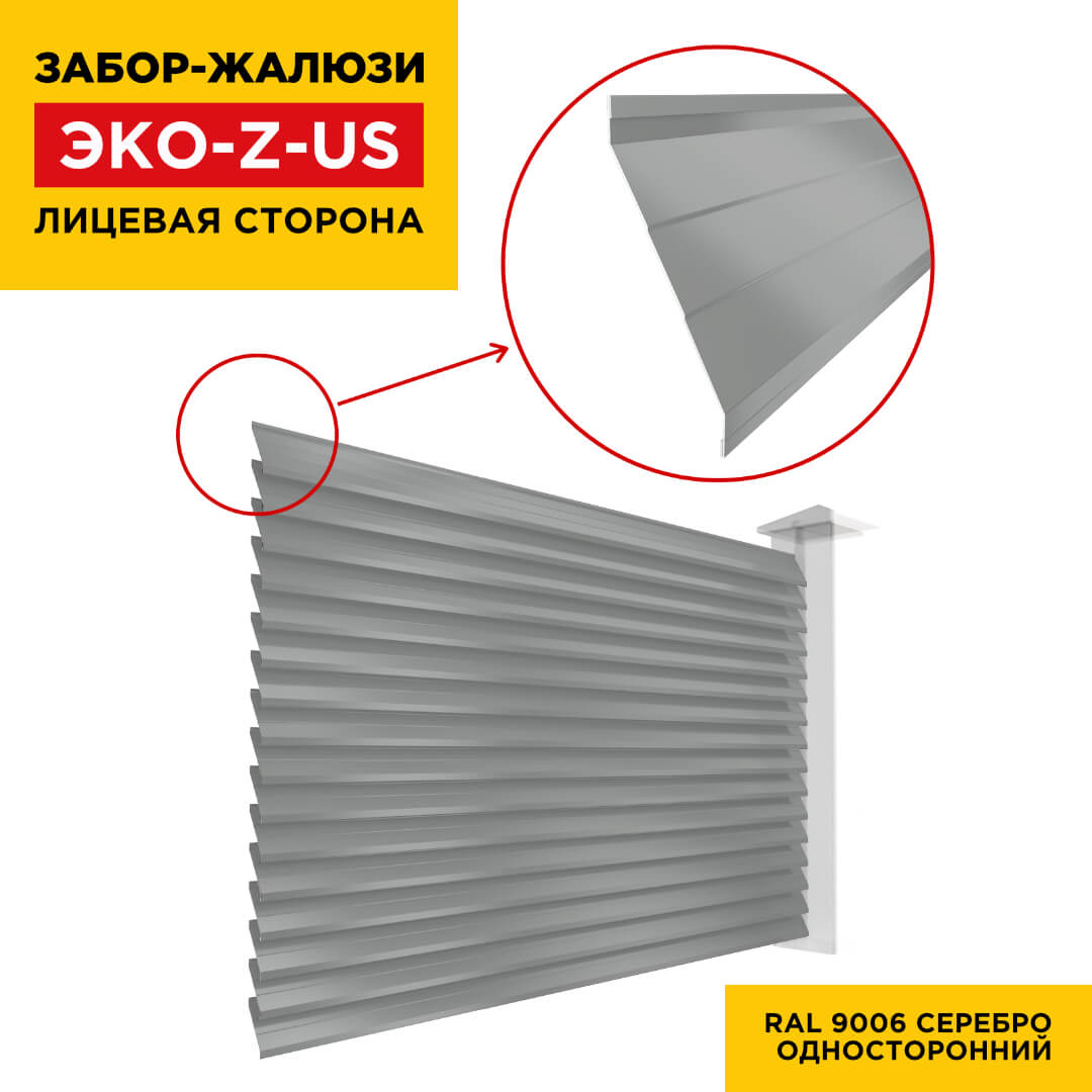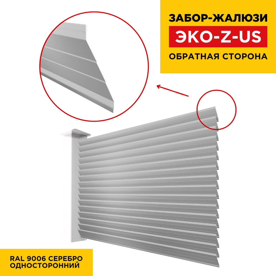 Ламель металлическая Z-образная усиленная ЭКО-Z-US, цвет RAL 9006 Серебро, длина любая кратно 1см под заказ - для забора-жалюзи, беседки, перголы в Саранске