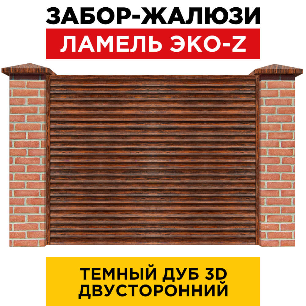 Ламель металлическая Z-образная простая ЭКО-Z, цвет под дерево Темный Дуб 3D Принтек двухстороннее покрытие, длина любая кратно 1см под заказ - для забора-жалюзи, беседки, перголы в Саранске