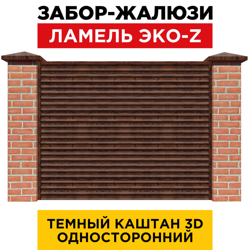 Ламель металлическая Z-образная простая ЭКО-Z, цвет под дерево Темный Каштан 3D Принтек одностороннее покрытие, длина любая кратно 1см под заказ - для забора-жалюзи, беседки, перголы в Саранске.