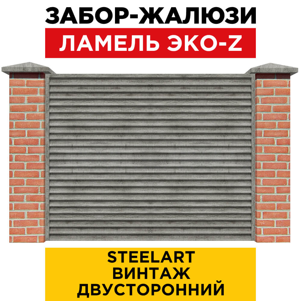 Ламель металлическая Z-образная простая ЭКО-Z, цвет под дерево Винтаж SteelArt двухстороннее покрытие, длина любая кратно 1см под заказ - для забора-жалюзи, беседки, перголы в Саранске
