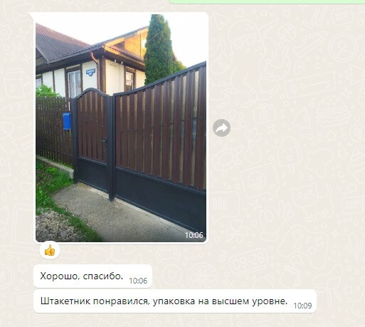 Хотим поблагодарить сотрудников Торговый Дом «Центр Металлокровли» за отличную и четкую работу. При обращении к вам получили полную информацию об интересующем нас евроштакетнике. Заказ был выполнен и доставлен вовремя. Всем довольны. СПАСИБО!