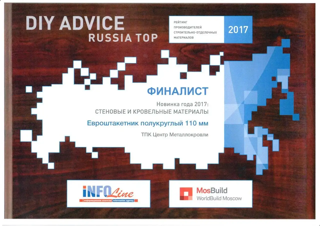 Диплом финалиста рейтинга DIY ADVICE RUSSIA TOP 2017