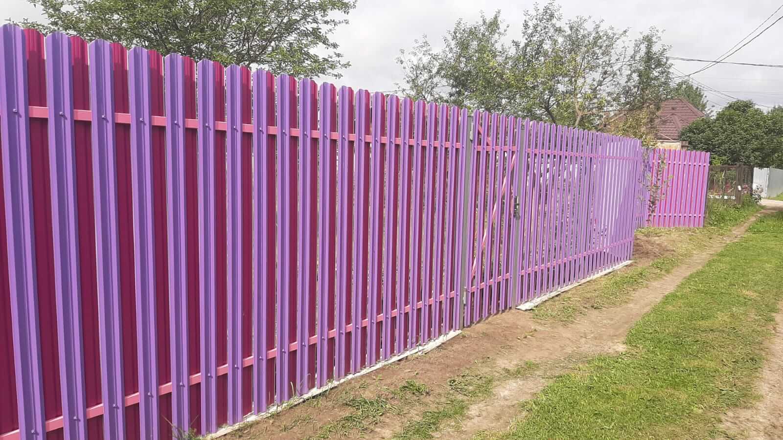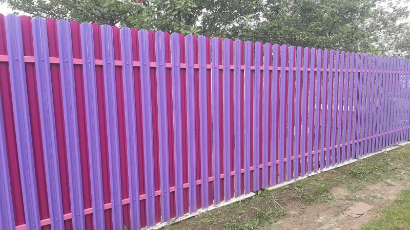 ✅ Вид секции: шахматка ✅ Профиль штакетника: ЭКО-М 95мм ✅ Цвет и покрытие: RAL4005 Сиреневый, RAL4006 Пурпурный полиэстер
