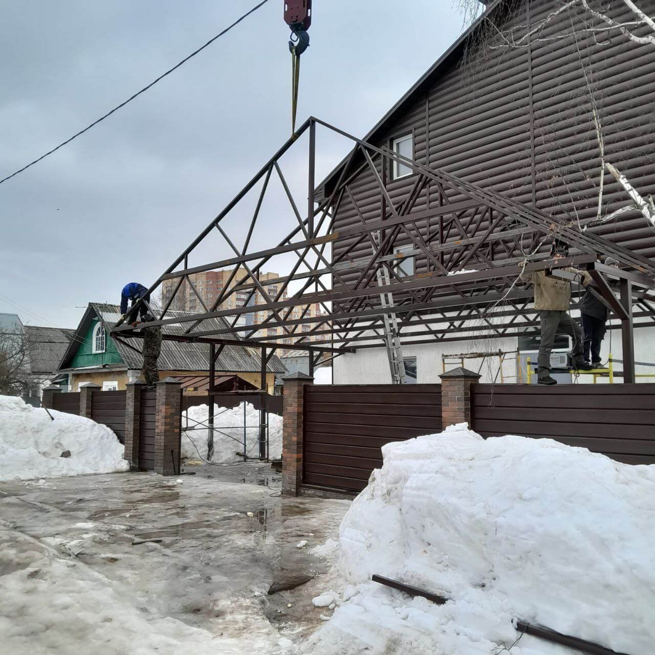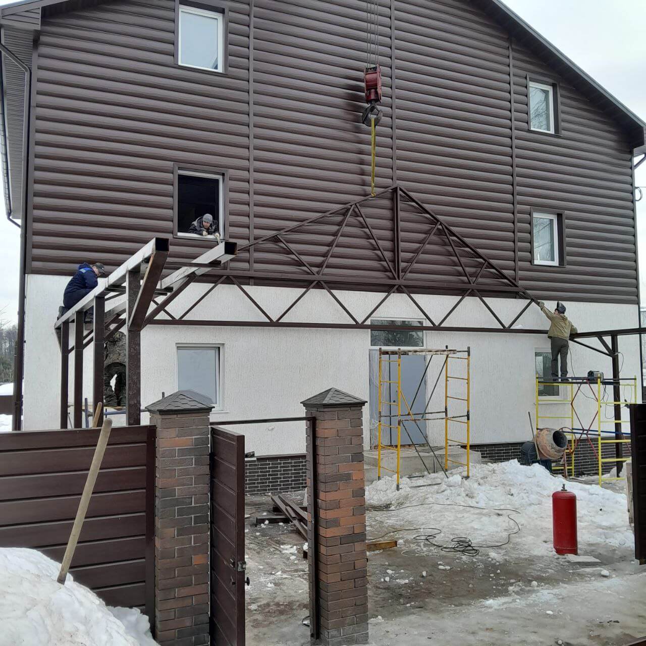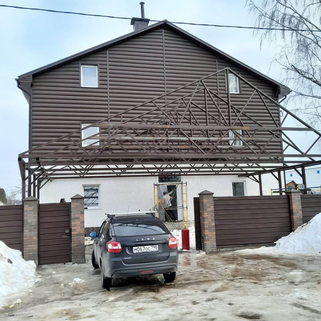 Металлический сайдинг "Бревно Рубленое 4D" или "ЦАРЬСАЙДИНГ" в оттенке "Мореный Дуб на фасаде дома