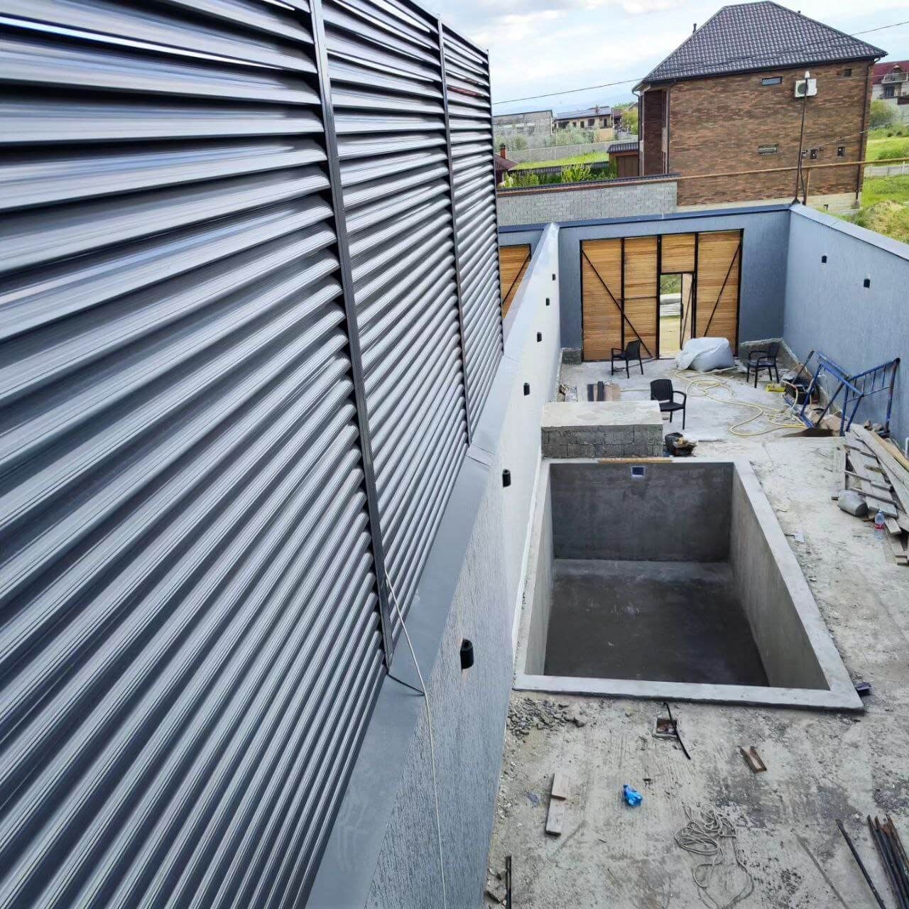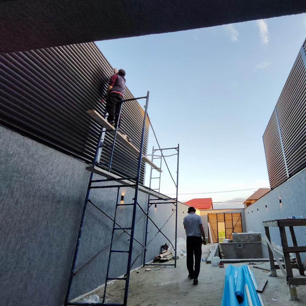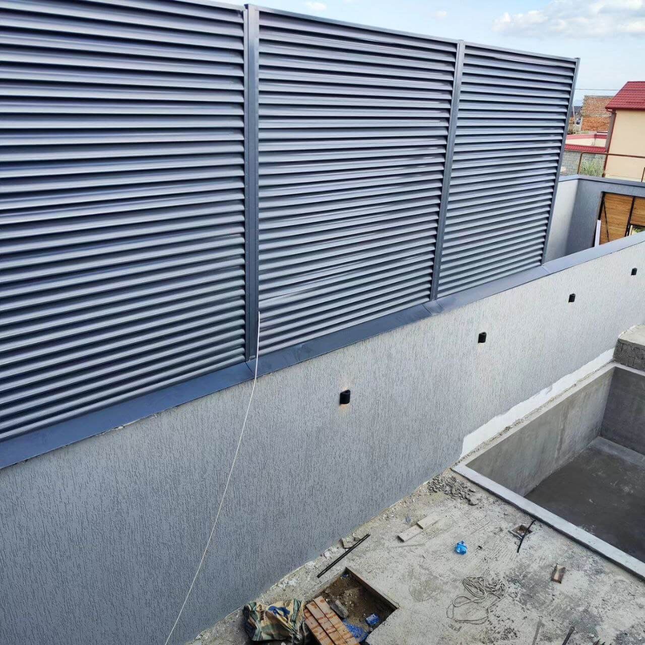 ✅ Забор установлен в городе: Махачкала ✅ Вид секции: забор-жалюзи ✅ Профиль металлических ламелей: еврожалюзи ✅ Цвет и покрытие: RAL7024/7024 Серый Графит двусторонний