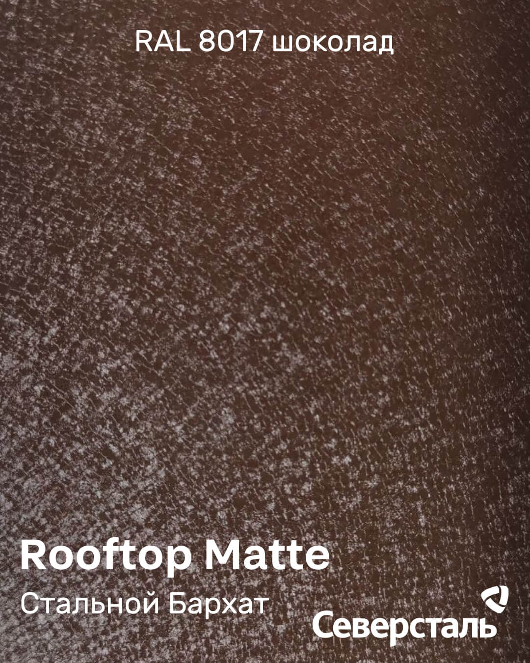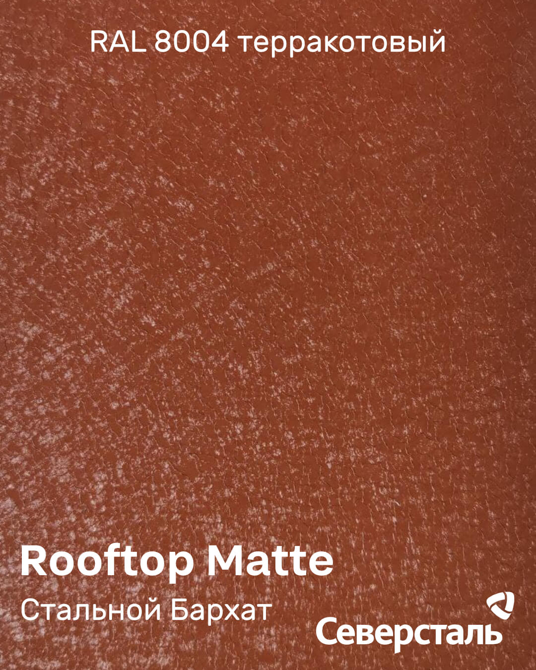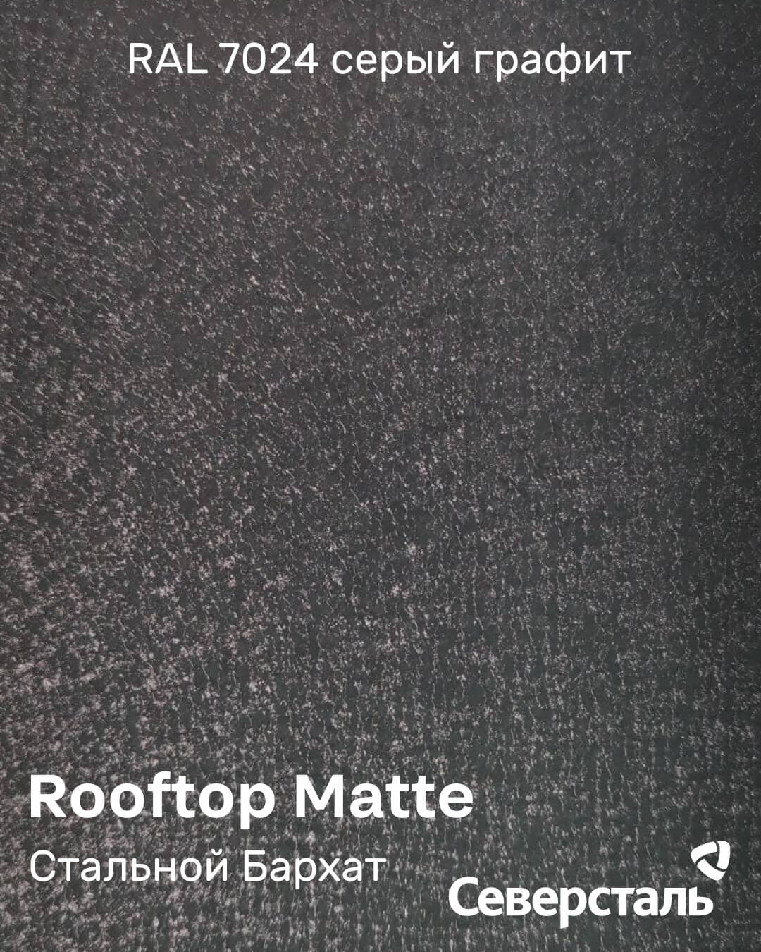Металлочерепица Rooftop Matte Стальной Бархат в Саранске - полный каталог и палитра доступных цветов металлочерепицы Монтеррей, Каскад, Банга, Арарат, Геркулес, Геркулес модульный с покрытием Rooftop Matte (Стальной Бархат) производства Северсталь для кровли крыши в Саранске.